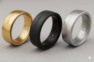 At the heart of NeuroFit is a lightweight, stylish smart ring equipped with advanced sensors that continuously monitor key physiological signals — including heart rate, sleep patterns, body temperature, stress levels, and activity metrics.